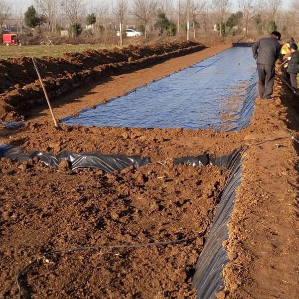 藕池地基開挖,基面平整夯實,剔除雜物后鋪防滲膜,邊鋪邊回填土(約20cm左右),邊坡頂部挖溝錨固,推薦使用厚度0.5mm,采用城建標準,詳細指標見下表。技術指標:
